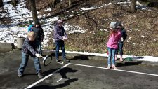 | Justin setzte den Eisstock in den Zielbereich