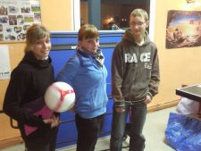 nahmen die Preise (Tischtennisplatte, Fußball) in Empfang |